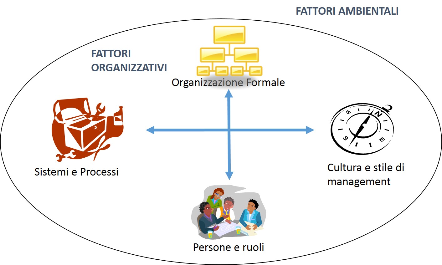 - Organizzazione Formale (struttura organizzativa, organizzazione del lavoro, metodi e routine, ambiente organizzativo, gestione delle risorse umane, sistema formale di ricompensa)