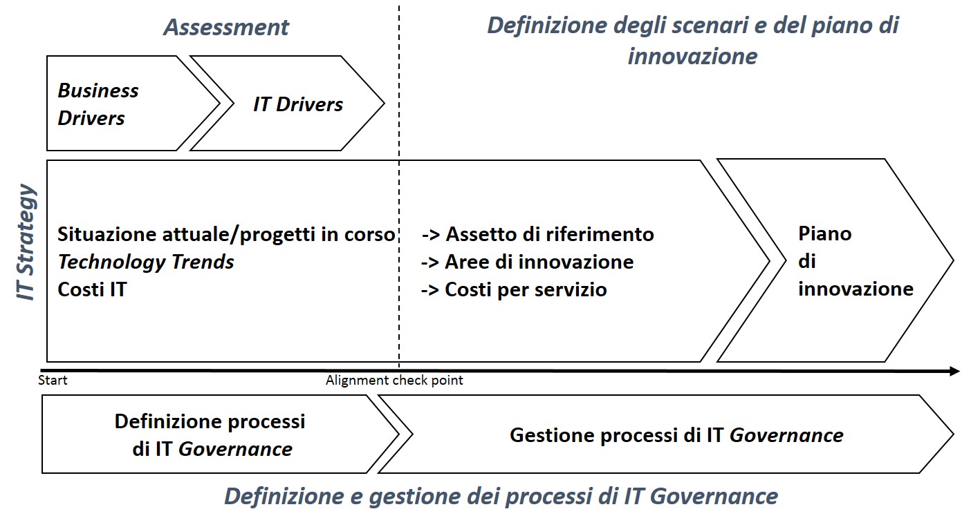 Nei post successivi ho descritto alcuni strumenti utili per avere la conoscenza esatta della situazione di partenza, in termini di infrastruttura, sistemi e processi già operativi e progetti in corso, con l’obiettivo di verificare se tutti i progetti in corso sono ancora coerenti con le strategie di business e se esistono degli interventi di natura infrastrutturale, propedeutici allo sviluppo di progetti strategici, che vanno messi in cantiere.