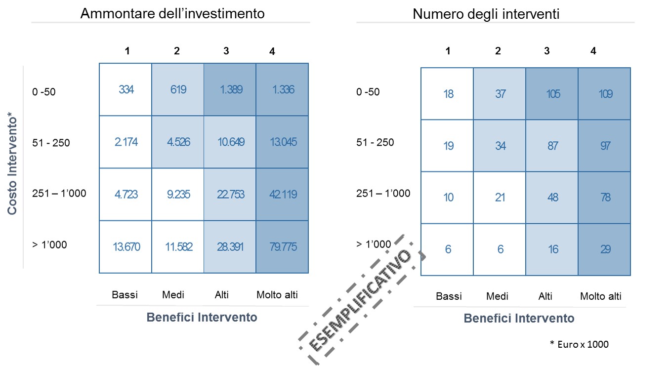 Sulla matrice potete rappresentare sia il numero dei progetti, che l’ammontare complessivo degli investimenti.